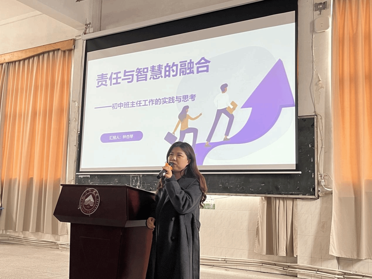 钟杏琴老师从初中班主任的工作实践入手,展现班主任的角色定位,强调班主任应是一个多元化的角色。她分享了班级管理的核心策略——用爱心换真心,重视班级文化构建与班干部的培养。另外,她还针对具体案例,阐述突发事件处理模型,聚焦引导和跟踪观察在处理事件中班主任发挥的重要作用。她建议我院学生应不断交流思考,保持耐心和爱心,注重协调沟通。