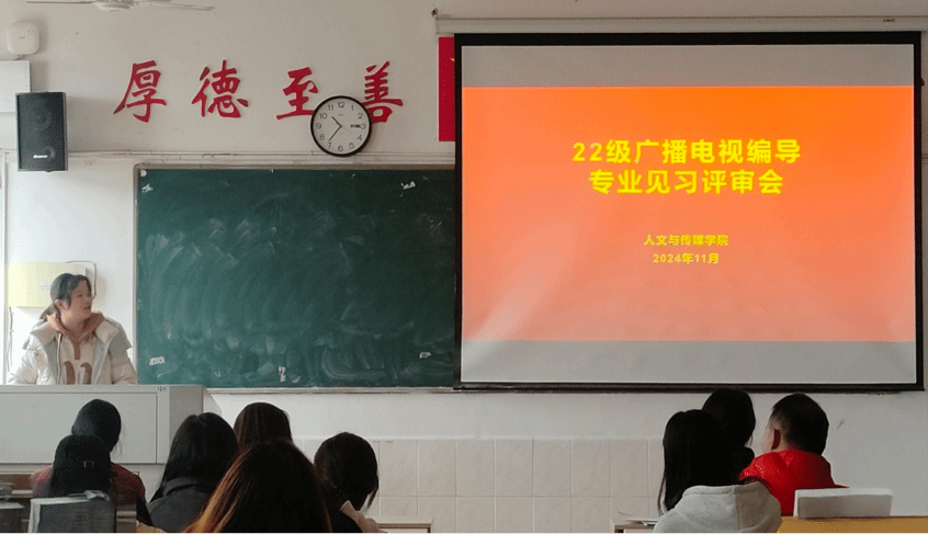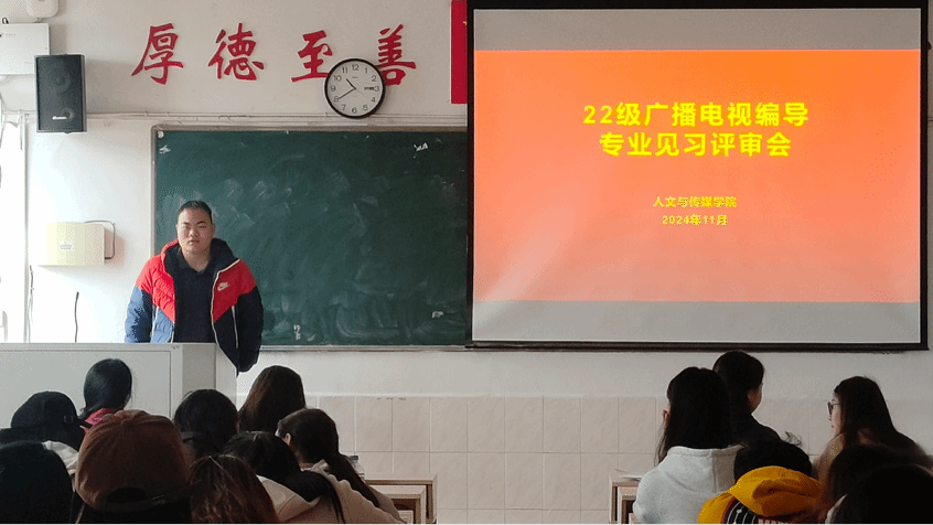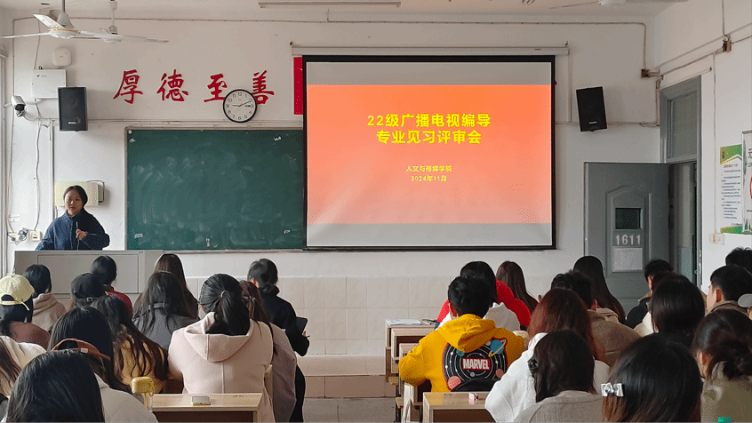为展示和品评22级广编班同学制作的见习作品,提高学生们的专业认知水平,11月21日上午,我院于跬步楼1611开展22级广播电视编导专业见习评审会。本次评审会由广播电视编导专业全体老师出席,22级广编班全体学生共同参会。