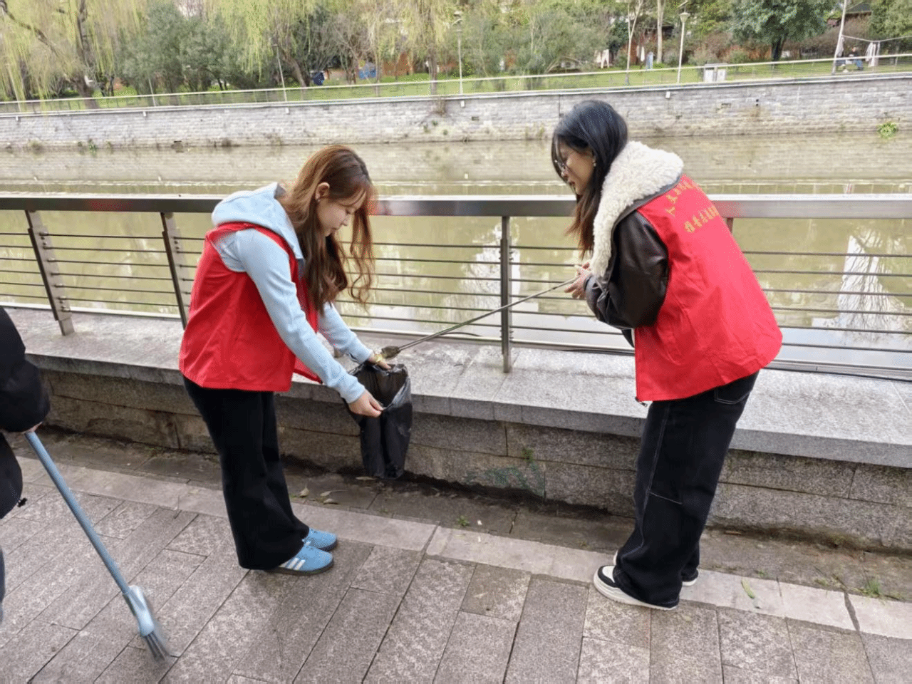 在此活动中,同学们以饱满的热情积极参与护河行动。大家分工明确、配合密切,手持铁夹、垃圾袋等清理工具,认真地将河道两旁的纸巾、易拉罐等垃圾和杂物清理干净,积极打造良好的河道环境。经过数小时的努力,河道旁逐渐恢复了往日的干净。