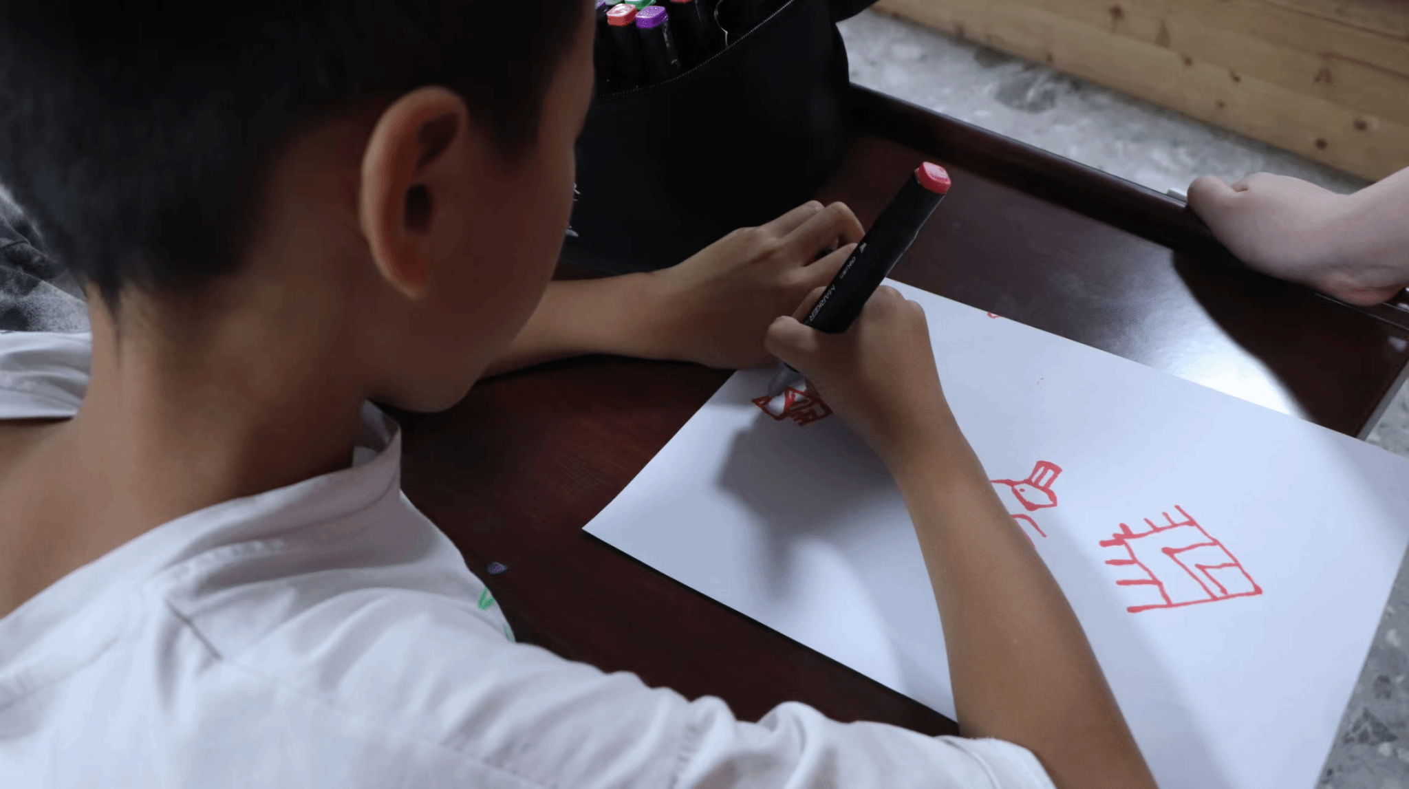 在“黎族图腾拼拼乐”环节,孩子们进行分组合作,将拼图碎片拼凑成完整的黎族传统图腾,并就图腾的含义进行热烈讨论。曹晨茜向孩子们详细讲解图腾的文化寓意,她引导孩子们在冲头村中辨识相关元素,增强对本土文化的认知。“黎族纹样涂鸦赛”将课堂气氛推向高潮,孩子们在志愿者的指导下绘制黎族纹样,并用普通话进行介绍。活动最后设置了寻宝环节,孩子们依据藏宝图提示进行探索实践,活动过程中运用普通话进行交流探讨。