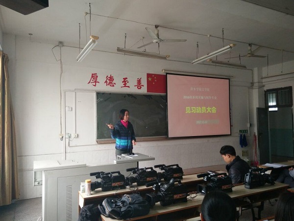 会上,黄如光作动员讲话。他指出,此次见习的目的与意义在于让学生具体地感受和了解新闻采编与制作专业相关领域、相关行业的现状和发展动态;提高学生应用所学知识在实践中发现问题、分析问题和解决问题的能力。他表示,此后的见习活动将安排在纸媒、广播电视、网络以及新媒体的各个传媒机构参观和学习,进行相关的理论和实践操作。本学期的见习单位是萍乡日报社,见习的任务是了解报纸从采访、编辑到印刷、出版的各个流程,熟悉新闻摄影与摄像的相关实践操作。他要求,此次见习活动结束后,每个人需完成一篇不少于2000字的见习报告,拍摄10张照片,以小组为单位完成一部3–5分钟的短视频。此外,他还介绍了此次见习的领导小组成员及指导教师。