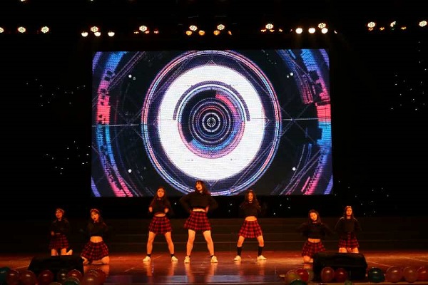晚会在喜气洋洋的《中国结》开场舞中拉开帷幕。文学院院长易志文在热情洋溢的新年致辞中,总结不懈奋斗的过往,展望希望蓬勃的未来。整场晚会共分为三大篇章,它们巧妙衔接,层叠深入,紧紧围绕晚会主题相得益彰。在第一篇章《青春滋味》中,爵士舞«舞动青春»首先登台,舞者们用饱满青春的热情,流畅自如的舞姿点燃了整个晚会的气氛,台下观众此起彼伏的喝彩是对节目的最佳赞赏。随后,古典与现代巧妙结合的«映山红»用满腔深情,意味悠长的中国风韵将舞台渲染得有声有色。接着,文学院青年志愿者协会用手语表演为观众们奉献了大爱无声的《青葱岁月》。