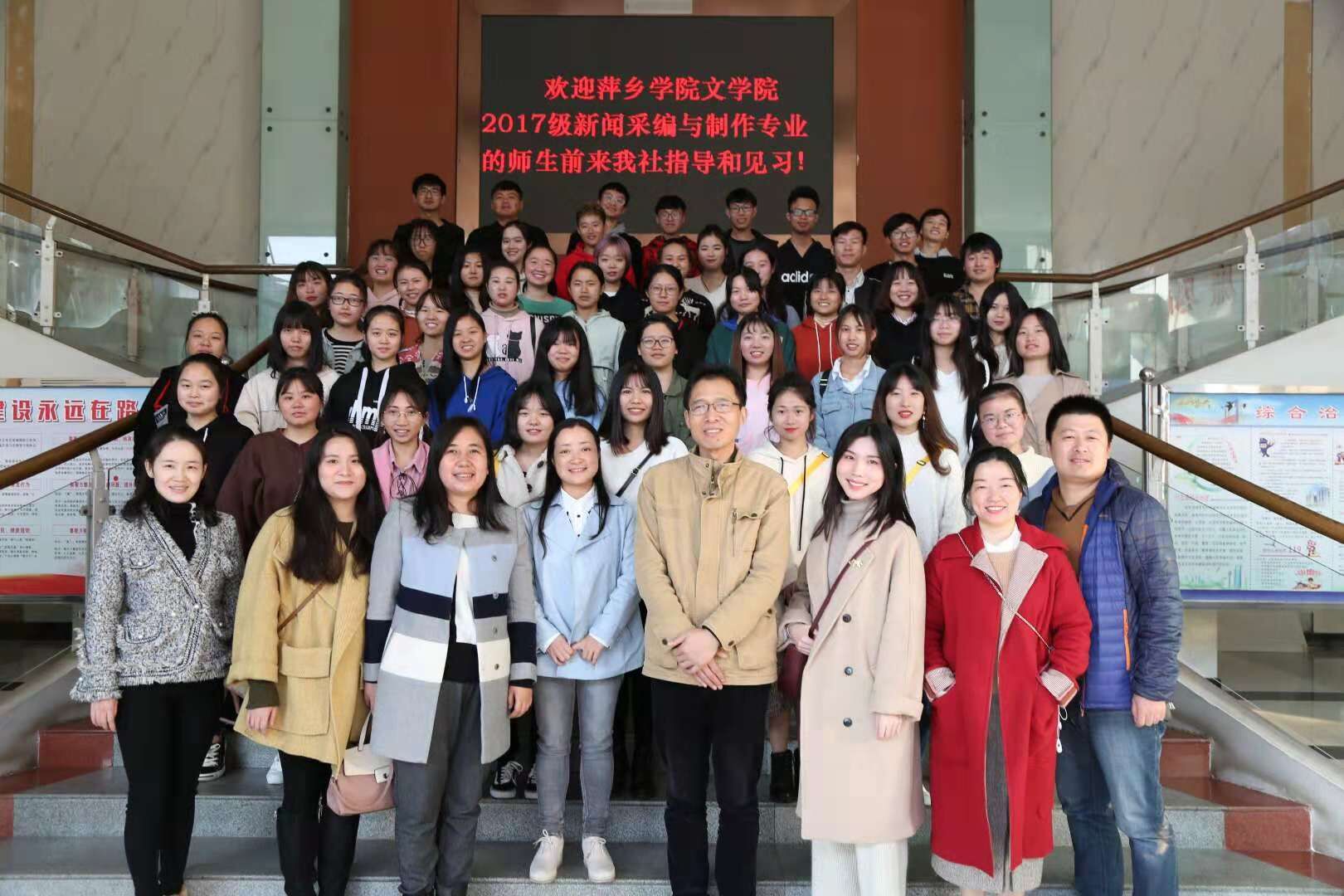 11月27日下午,文学院17级新闻采编与制作专业师生在副院长郭慧的带领下到萍乡日报社见习。