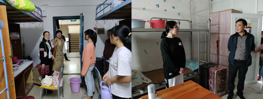 吴芳书记一行对新生的到来表示热烈欢迎,在询问新生的安置情况后,对提出的问题做了详尽解答。老师们在排查宿舍存在的安全隐患后,进一步为新生普及了校园安全相关知识,并强调疫情期间需做好“日报告,零报告”的工作。最后,老师们表示,希望新生在以后的学习生活中能够互帮互助,尽快转变自身角色,进入大学生活。