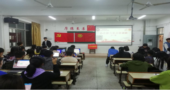 10月15日19:15,人文与传媒学院党支部和团总支学生分会在跬步楼1506教室联合开设办公室能力重点培训班。党支部办公室主任王成伟,团总支学生分会秘书处秘书长助理欧阳晗妤、郑海彬担任主讲,各部门实习干事代表参与培训。
