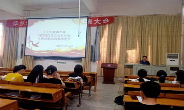 为进一步提高我院学生的考研热情,了解考研信息,掌握考研技巧,5月14日下午,我院汉语言文学专业考研经验交流会暨推进会于跬步楼1101教室举行,我院院长易志文、副院长郭慧、教学科研科科长孙海龙出席,18汉语言有考研意向的同学参加。本次交流会由贺宥姗主持。