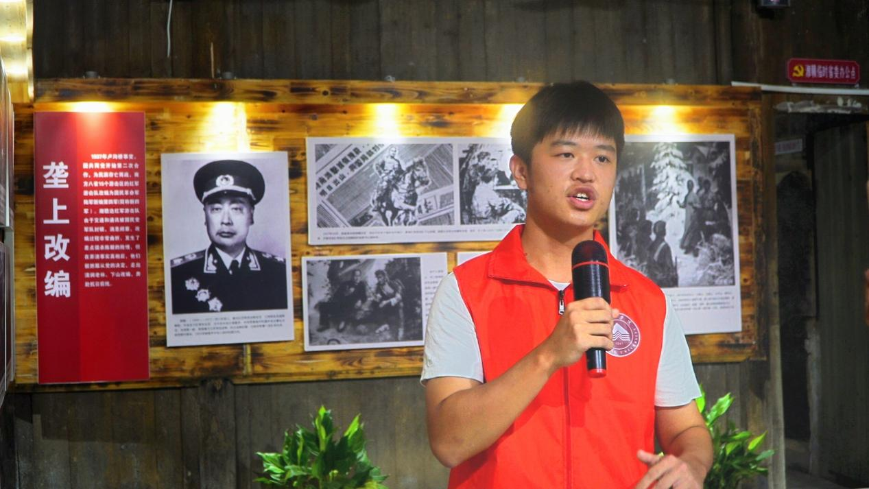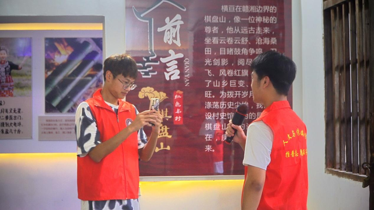 “今天,我们来到的是棋盘山垄上改编旧址……”志愿服务团在垄上改编旧址采取了直播的形式来给大家讲解省级红色名村——莲花县神泉乡棋盘山村的故事。由志愿服务团的成员刘博阳同学带大家走进垄上改编旧址、棋盘山村村史馆,走进这片红色土地,一起聆听来自当年革命时期的铮铮回响。