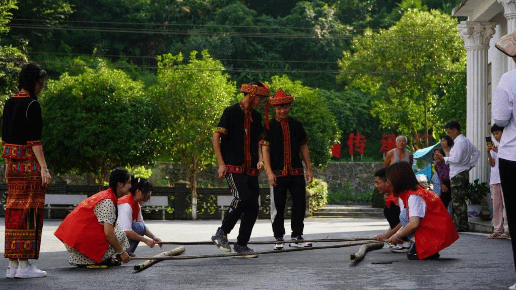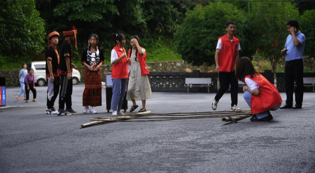 2022年7月5日,我院“同心 同语 同行”三下乡暑期志愿服务团开展了体验民族文化的活动。莲花县神泉乡棋盘山是黎族聚居地,当地汉黎民族互亲互敬、和谐安宁。棋盘山有着丰厚的黎族文化资源,竹竿舞就是黎族人喜爱的一种极具民族特色的娱乐活动。