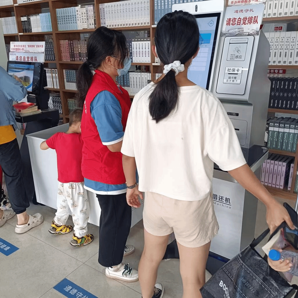 9月3日,三名学生志愿者一同抵达萍乡市图书馆。市图书馆的工作人员们在二楼大厅对志愿者们的到来表示热烈欢迎。了解基本情况后,志愿者们进行任务分配:两人分别在一楼和二楼的门口协助保安按照疫情防控要求引导图书馆进出人群,另外一人在儿童借阅室为借还书籍的小朋友们提供帮助。