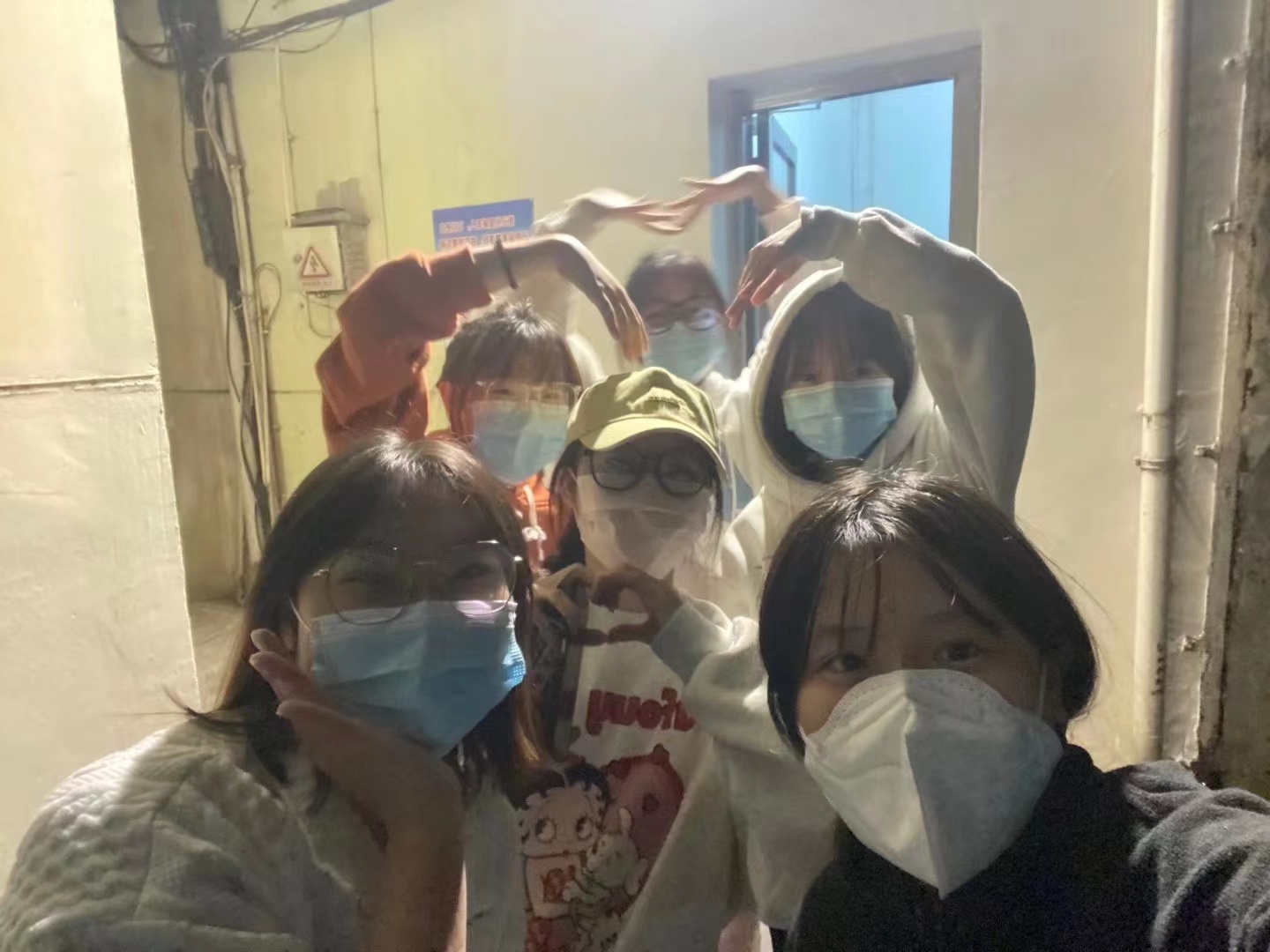 11月9日凌晨,在医护人员和学生志愿者的共同努力下,九栋宿舍全员核酸采集工作圆满结束。学生志愿者们早已是汗流浃背,脸上出现深深的勒痕,但疲惫的脸庞终于有了些许放松。