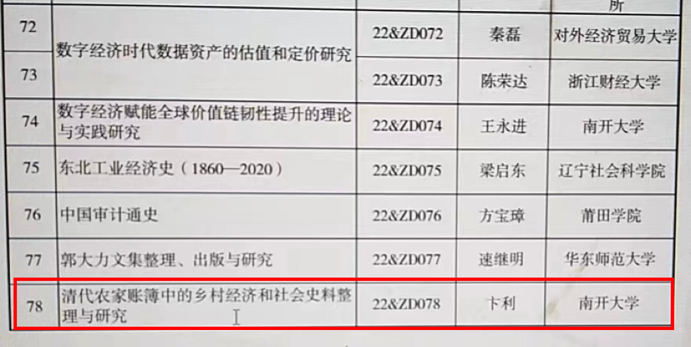 近日,南开大学卞利教授为首席专家申报的国家社科重大项目《清代农家账簿中的乡村经济和社会史料整理与研究》正式获得立项。我院副院长凌焰博士负责子课题《清代湘赣边区农家账簿中的乡村经济与社会史料整理与研究》。凌焰博士自2004年以来在以萍乡为核心的湘赣边区的乡间田野抢救性收集家谱、碑刻、账簿、契约、庙志、宗教科仪书等民间文献。凌焰博士带领安源红色文化研究中心研究团队,利用这些从民间抢救而来的民间文献开展了卓有成效的研究。2016年至今,中心团队立项教育部人文社科青年项目1项,省社科规划项目4项。在cssci来源期刊发表学术论文十余篇。