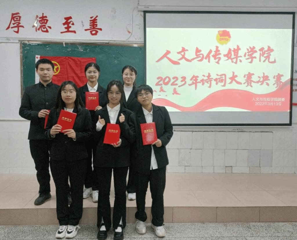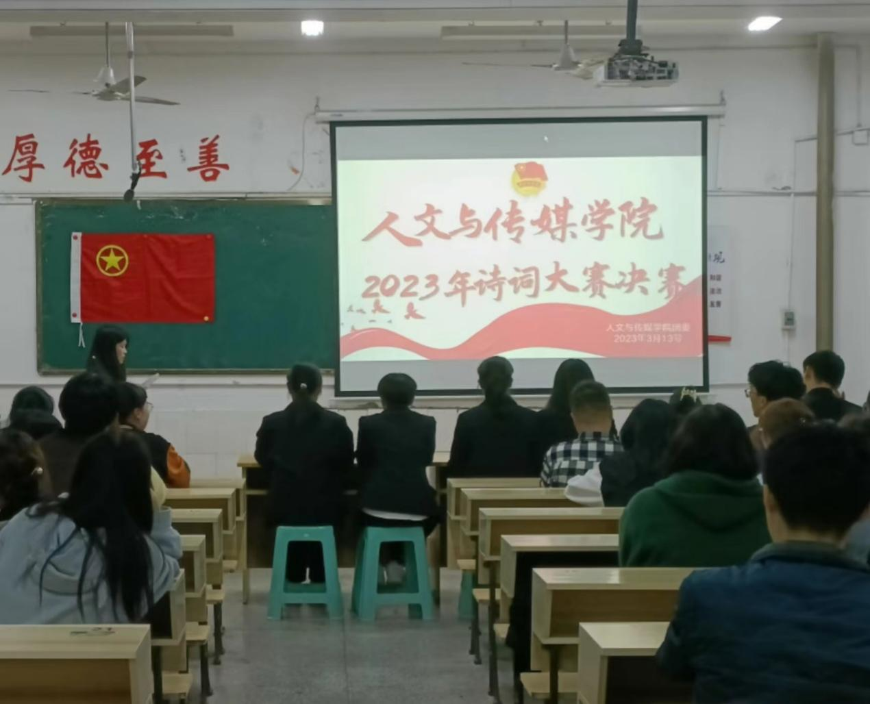 “诵诗词美韵,沐华夏芬芳”。为构建浓郁的书香校园,弘扬中华诗词文化,我院于3月13日在跬步楼1506举行了诗词大赛。在大赛初赛中,以笔试方式选出刘巧、欧阳妍、张国风、王佳、查佳惠、陈慧盈六位选手进入决赛。决赛由团委组织进行,观赛人员为2021、2022级学生代表。