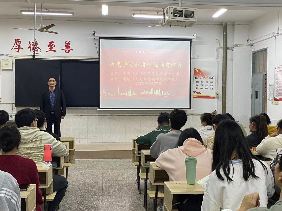 为进一步加强学风建设,发挥榜样示范引领作用,提高同学们对考研的了解。我院于4月27日在跬步楼1406举行了历史学专业考研经验交流会。此次会议由历史学专业负责人黄虎主持,我院副院长凌焰出席,19级历史班考研上岸学子以及部分历史学专业学生参会。