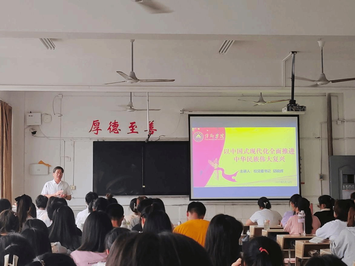 为深入贯彻习近平新时代中国特色社会主义思想主题教育,5月16日,校党委书记邱晓辉以《实现中国式现代化全面推进中华民族伟大复兴》为题,在跬步楼1506为22级历史学专业学生开展“形势与政策”专题教学。
