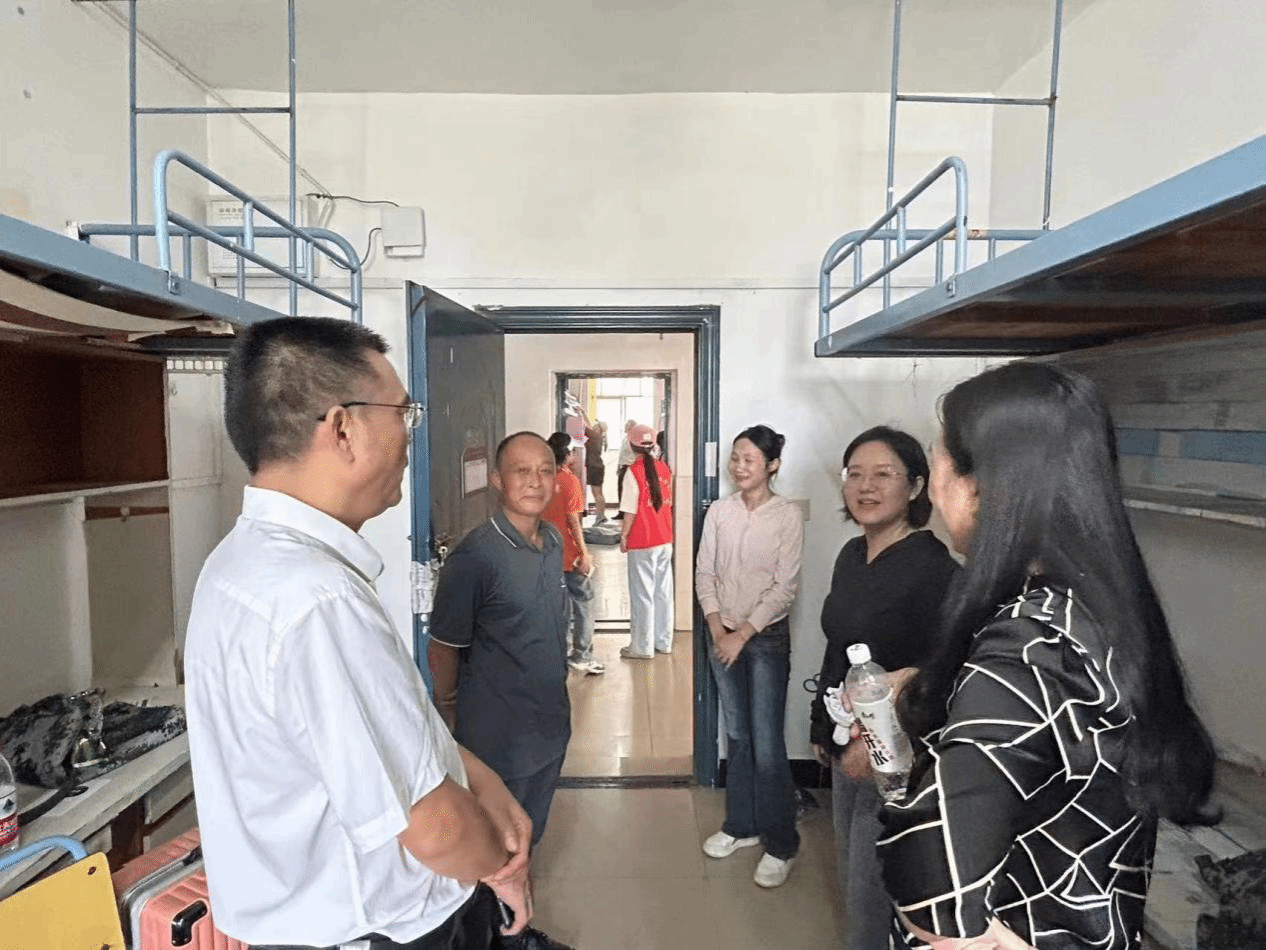 为了及时了解学生的思想动态、心理状态,切实解决学生遇到的问题,9月9日下午,我院党委书记吴文彬、院长郭慧、党委副书记孙琦前往新生宿舍看望,对新生表示慰问和关切。