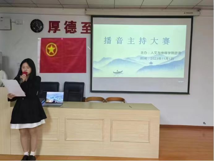 为进一步丰富校园文化生活,培养并挖掘出一批文化内涵深、语言能力强、形象气质佳的优秀播音主持人,11月1日,我院在跬步楼1409举行播音主持大赛活动。本次活动邀请了党政办公室主任尹杰、团委书记罗珺和教师宋丽霞担任评委,比赛由曹芳主持,共14位参赛选手参加。