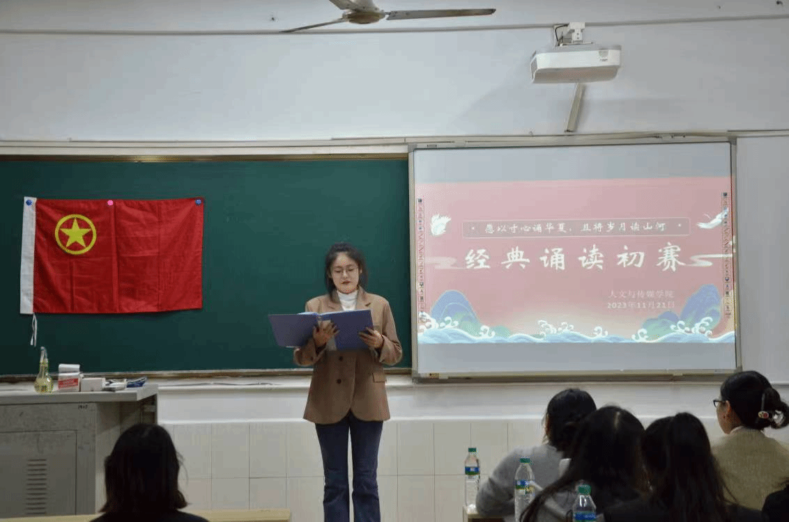 激昂诗篇,吟诵难忘岁月;激情朗诵,演绎时代华章。为弘扬红色文化,传播经典红色作品,11月21日晚,我院于跬步楼1406举办经典诵读预赛。我院团委书记罗珺、教师刘靖、丁婷、宋丽霞担任评委,比赛由廖怡琼和吴汉晴主持,十八组选手参加。