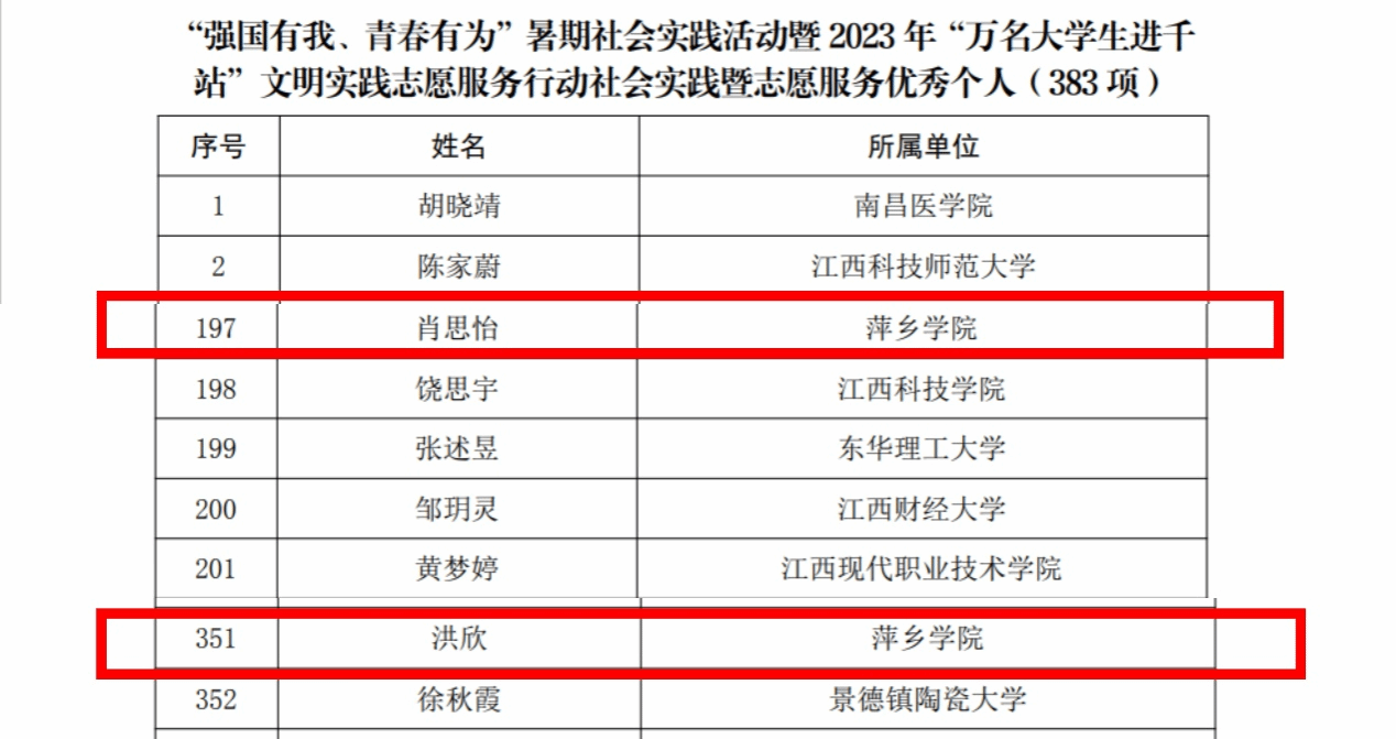 根据省委宣传部、省文明办、省教育厅、团省委联合印发《关于组织开展“强国有我、青春有为”暑期社会实践活动暨2023年“万名大学生进千站”文明实践志愿服务行动的通知》安排,经评审,共评选出优秀实践成果109项,优秀调研报告152项(其中特等奖38项、一等奖55项、二等奖59项,特等奖和一等奖作品的指导老师认定为优秀指导教师),社会实践暨志愿服务优秀团队和优秀指导教师165项,社会实践暨志愿服务优秀个人383项,优秀组织奖15项。