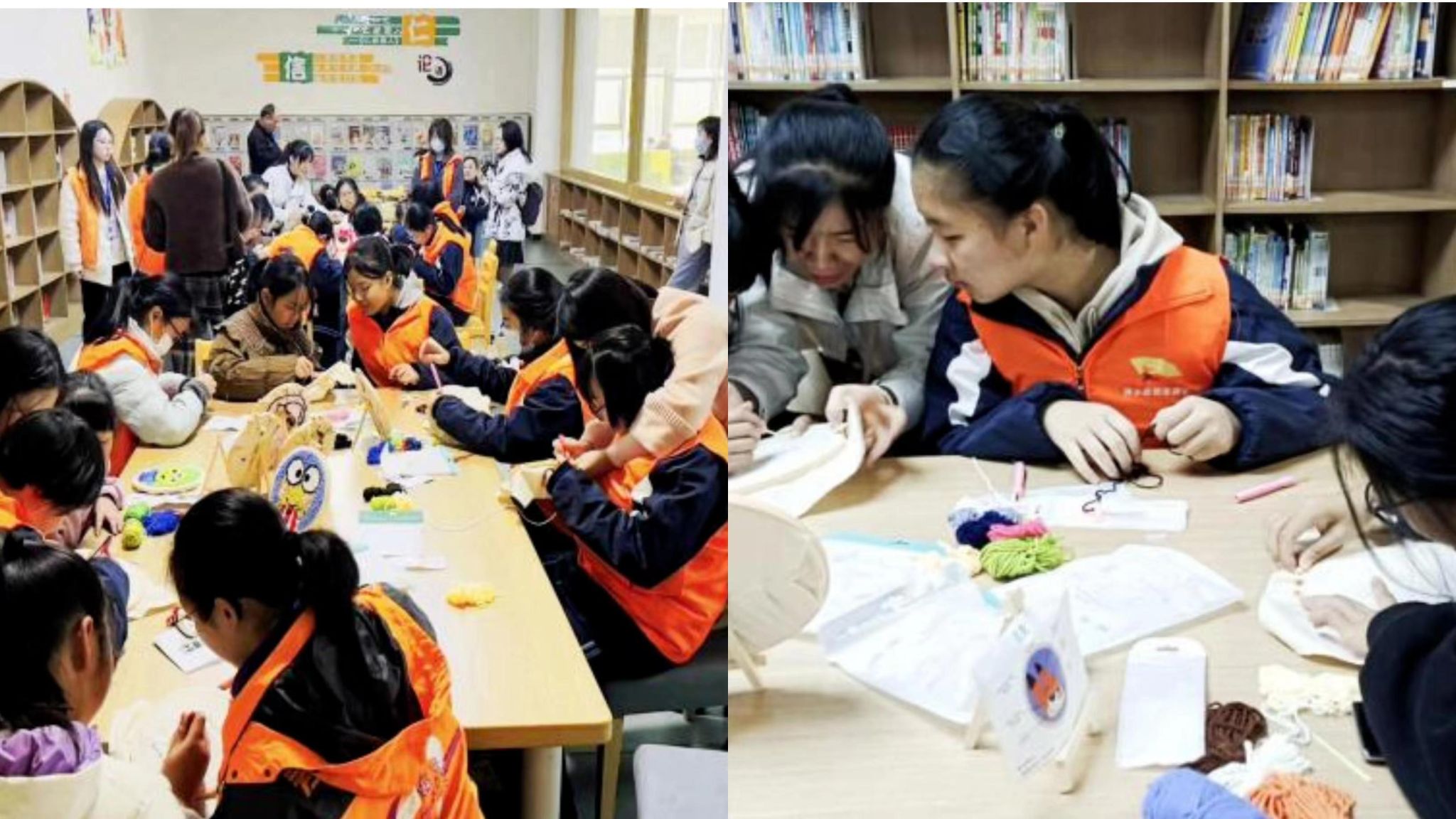 首先开展的是手工制作活动,六个孩子在义教队队员们的看护下尝试儿童钩针刺绣,从开始的疑惑不解到后来的游刃有余,孩子们在本次活动中学得不亦乐乎。通过手工制作,孩子们收获了满满的快乐和成就感。