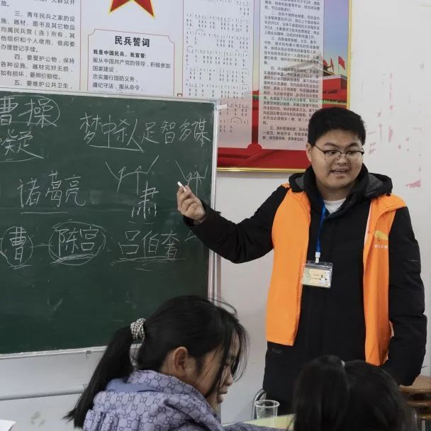 刘文涛带领小朋友们走进曹操。通过望梅止渴的故事,小朋友们了解到了曹操随机应变的能力;通过割发代首的故事,小朋友们认识到了曹操赏罚分明的行事风格;通过分香卖履的故事,小朋友们知道了曹操对妻子的深厚感情。课外休息欢声笑,小朋友们与义教队队员一起踢足球,打羽毛球。小朋友们的活力深深感染了队员们;小朋友们的笑容也成为了义教队队员们的开心源泉。