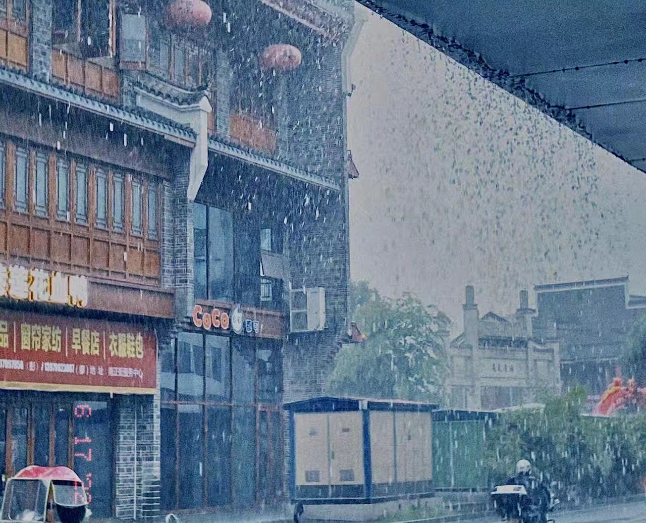 点点雨泫然,分毫不差地正中没带伞的我,我惊悉这雨不仅是滴落形骸,更是渗入魂魄,淌进灵魂。