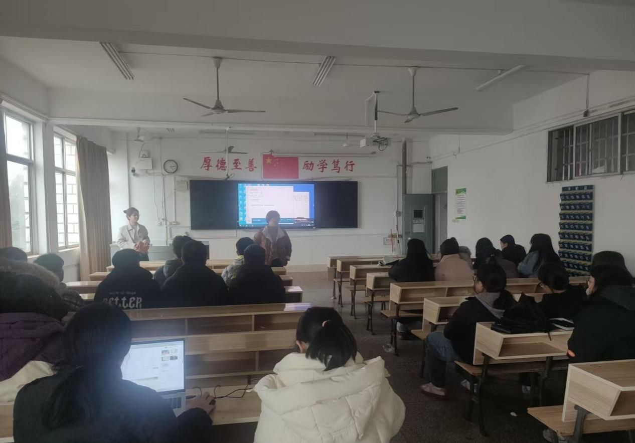 班会课上,邓红花结合自身与身边同学的就业经历,以贴近学生的话语体系,纾解毕业季学生的就业焦虑,以生动的案例告知同学们先就业再择业。罗珺就2025年就业形势、江西省最新的有关应届毕业生的界定、同学们反馈交流的热点话题与班级同学进行交流。